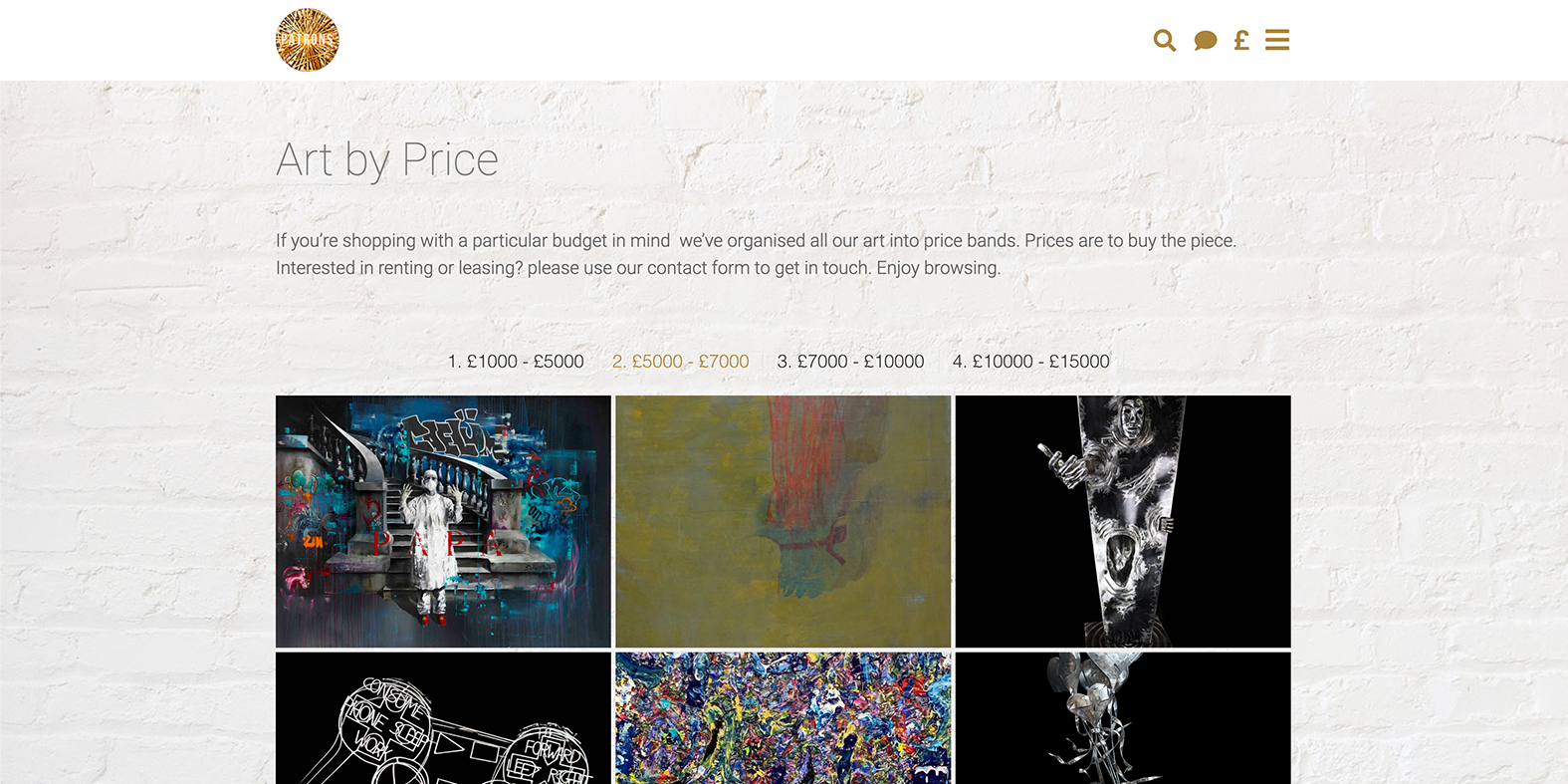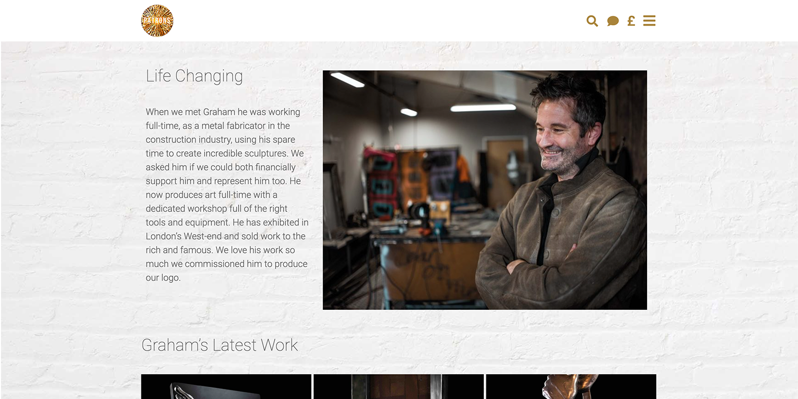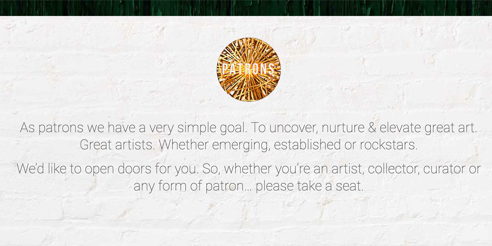 We commissioned their first artist, a metal fabricator, to build their logo from steel creating the foundation of their corporate identity from a hand-made piece. A statement from the get-go. We then built the online Patrons Gallery and a Patrons App to assist the sales team with clients, commissions and curators.